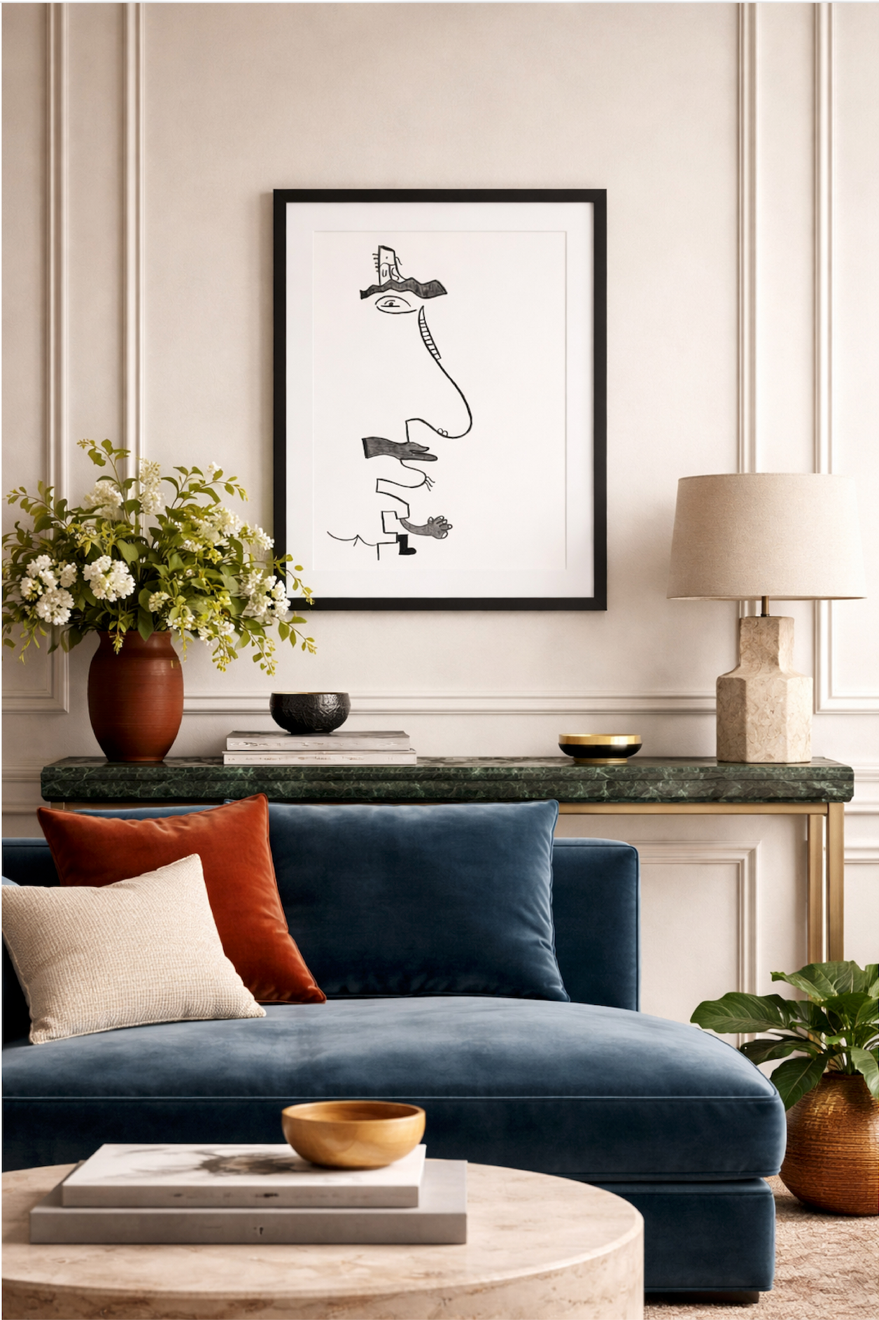 Available framed in black, white, or oak, or as an unframed print shipped rolled in a protective tube.