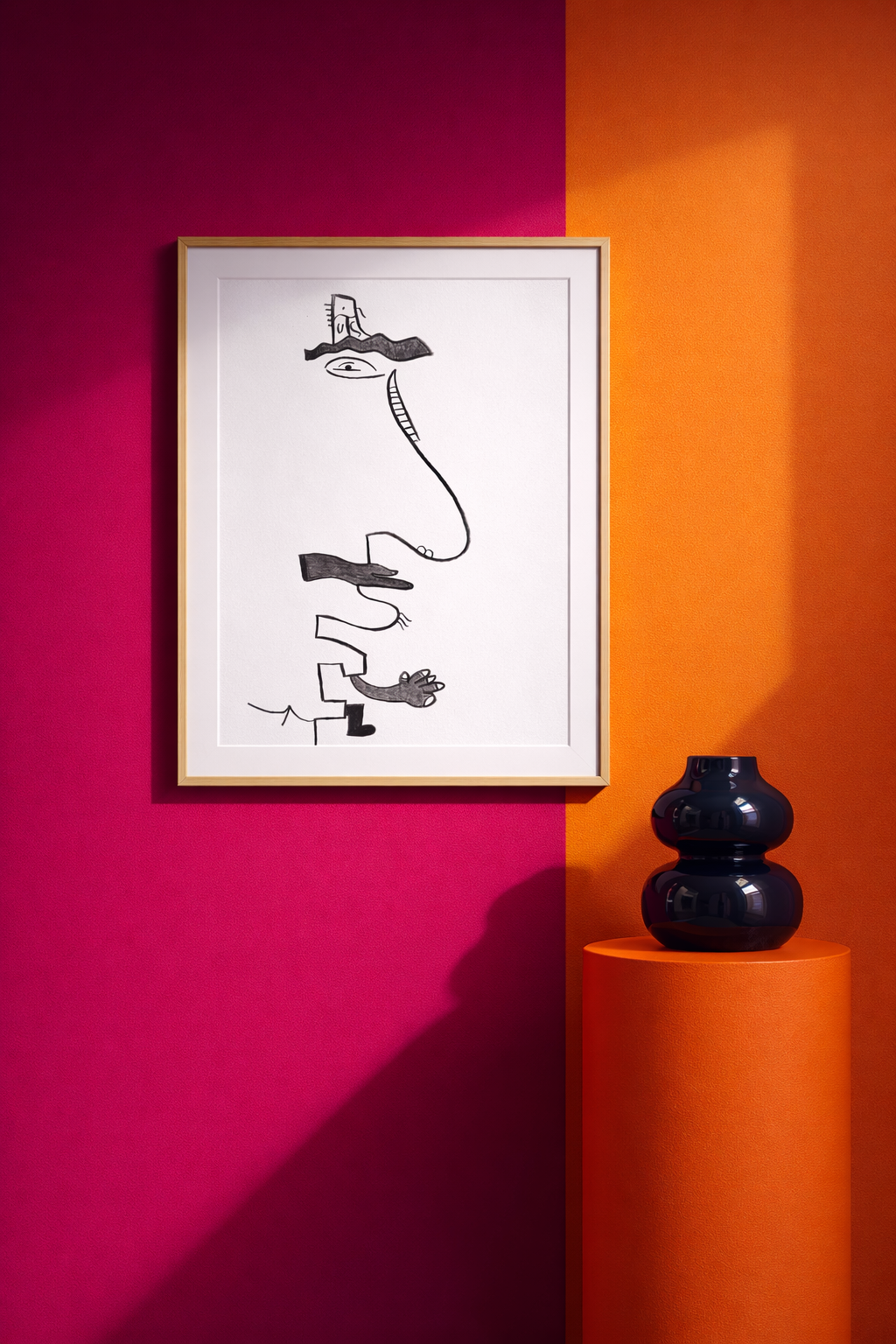 Soft Surveillance begins with a hat that doubles as a brain, a control unit perched above the face and directing the body below. The single eye becomes a checkpoint, and the soldier-like profile is built from strict contours and stitched seams that signal discipline and repair. Yet small breaks and misalignments slip through the system, turning obedience into friction and keeping the portrait readable but never fully compliant.
